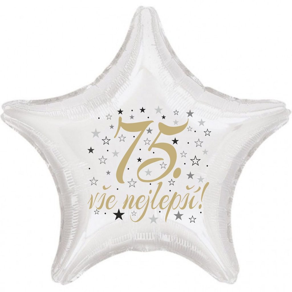 75. narozeniny balónek hvězda  Fóliové balónky nabízíme v různých tvarech a barvách. Jsou sice dražší než klasické latexové balónky, ale jejich výhodou je kvalita a nepropustnost. Fóliové balónky nafouknuté vzduchem Vám vydrží několik měsíců bez výrazných změn. V případě, že fóliový balónek nafouknete heliem, můžete počítat s dobou létání přibližně 3-7 dní, přičemž létání balónků ovlivňuje okolní teplota i objem samotného balónku.  Balónek má samouzavíratelný ventil, který ihned po nafouknutí zamezí úniku vzduchu popř. helia. Při nafukování vzduchem používejte prosím ruční pumpu popř. brčko na pití.  Inspiraci pro Vaší dekoraci najdete na internetovém magazínu www.party-narozeniny.cz. Velikost nabízených balónků je 42 cm.Je možné nafukovat heliem i vzduchem. Objem 13 litrů. POZOR!!! Všechny námi nabízené fóliové balónky mají samouzavíretelný ventil. V případě nafukování vzduchem, nafukujte ruční pumpou. Po nafouknutí se balonky sami uzavřou. Je možné je taky průběžně přes uzavíratelná ventil dofukovat.