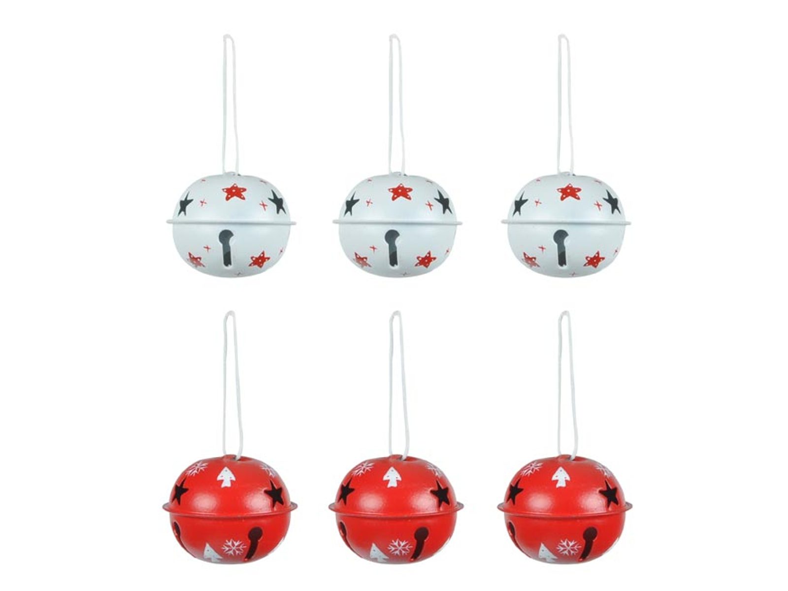Rolničky kovové červeno-bílé Tyto rolničky jsou ideální pro výzdobu vánočního stromečku, věnce nebo dveří. Hodí se tedy jak do interiéru tak i do exteriéru. Jsou odolné, praktické a vytvářejí veselý tón na vánoce. Balení obsahuje: 3 ks bílých rolniček a 3 ks červených rolniček. Průměr: 5cm